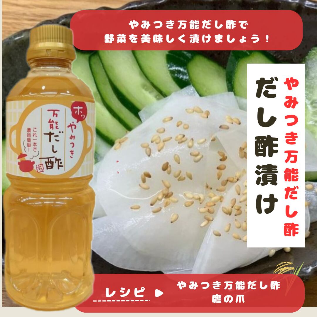 このやみつき万能だし酢で、日々の料理をより美味しく、簡単に彩ってみませんか!手軽さと本格的な味わいを同時に楽しんでいただけます。ぜひ、お試しください!